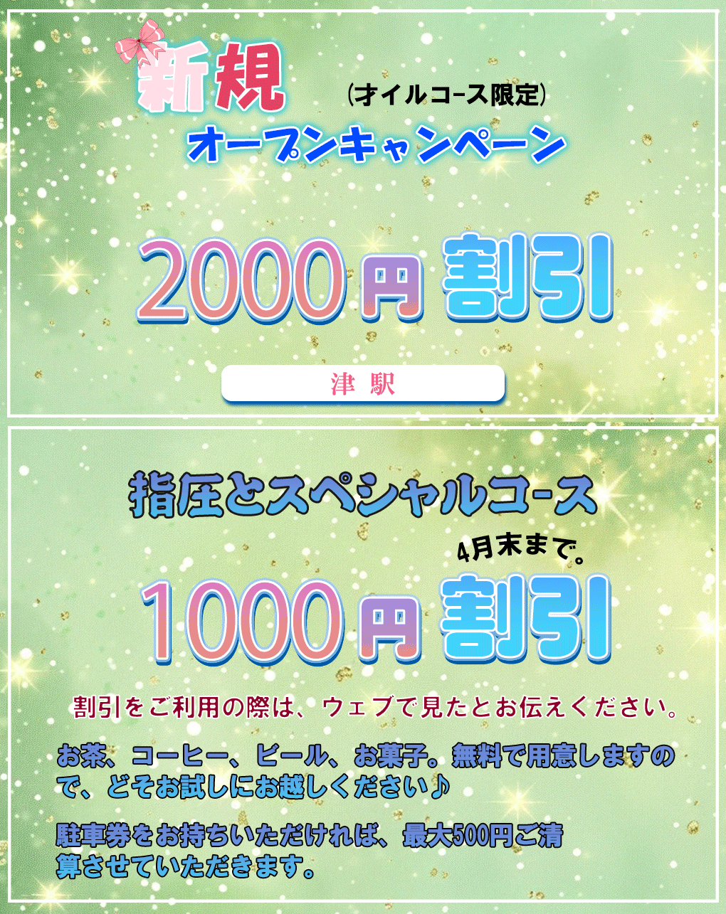 私たちはそんな日々お疲れの貴方様に尽くし、疲れを取り除くべく日々腕に磨きをかけております!!当店自慢のマッサージ技術で是非、気持ち良くなっていただければ幸いでございますそれが私たちの喜びです!